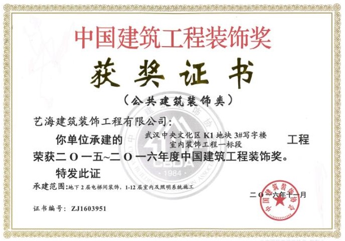 藝海建筑裝飾工程有限公司(簡稱“藝海裝飾”)成立于2001年,注冊資金5050萬元,具有建筑裝飾裝修工程專業(yè)承包一級、建筑幕墻工程專業(yè)承包一級、機電安裝工程專業(yè)承包二級、電子與智能化工程專業(yè)承包二級、消防設(shè)施工程專業(yè)承包二級、鋼結(jié)構(gòu)工程專業(yè)承包二級、建筑工程施...詳細信息>>